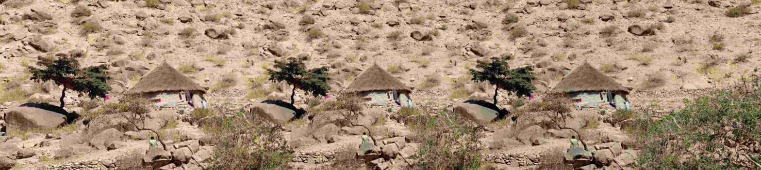 Nach Keren fahren wir aus Zeitgründen mit einem Taxi. Kleine Dörfer mit Rundhütten und massiven Häuschen, verrostete Panzer, die als Kinderspielplatz dienen und Felder – 80 Prozent der Bevölkerung leben von der Subsistenzlandwirtschaft – formen die Landschaft. Unter einer Kurve steht ein zerbeulter Pkw, der von einem Lkw von der serpentinenreichen Straße geschoben wurde.