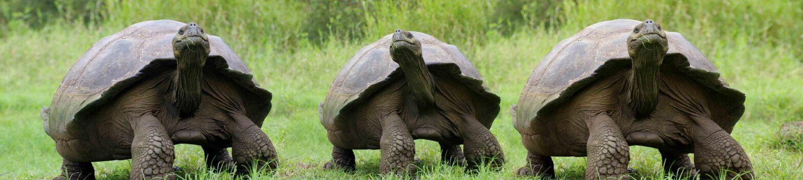 Auf Santa Cruz stehen Busse bereit und in 40-minütiger Fahrt geht es nach Puerto Ayora. Am Straßenrand mahnen Schilder nicht etwa vor Wildwechsel, sondern vor Riesenschildkröten. Und tatsächlich dösen einige dieser urtümlichen Tiere träge im Gras.