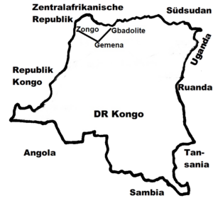 Gbadolite liegt, umgeben von Regenwald, im äußersten Norden der Demokratischen Republik Kongo (DR Kongo), nur wenige Kilometer südlich des Ubangi-Flusses, der hier die Grenze zur Zentralafrikanischen Republik bildet. Aus dieser abgelegenen Region stammt die Familie von Mobutu Sese Seko, der von 1965 bis 1997 als Präsident über Zaire – die heutige DR Kongo – herrschte.