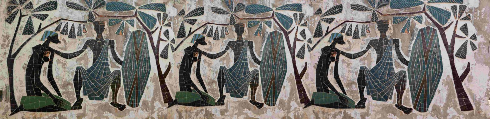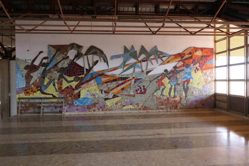 Zehn Personen prüfen unsere Pässe, brauchen jedoch eine halbe Stunde, um die Daten handschriftlich in eine Kladde zu übertragen. In der Zwischenzeit sehen wir uns im Gebäude um. Einige Wandmosaiken haben die Zeit erstaunlich gut überstanden.