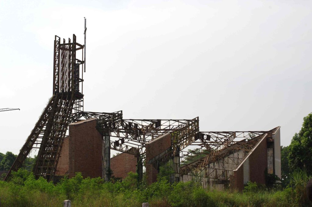 Am nächsten Tag erkunden wir die Überreste von Mobutus in Beton gegossenem Traum. Den Anfang macht die Kathedrale: Übrig geblieben sind Stahlträger, einige tragende Betonelemente und die Glocken im Turm.