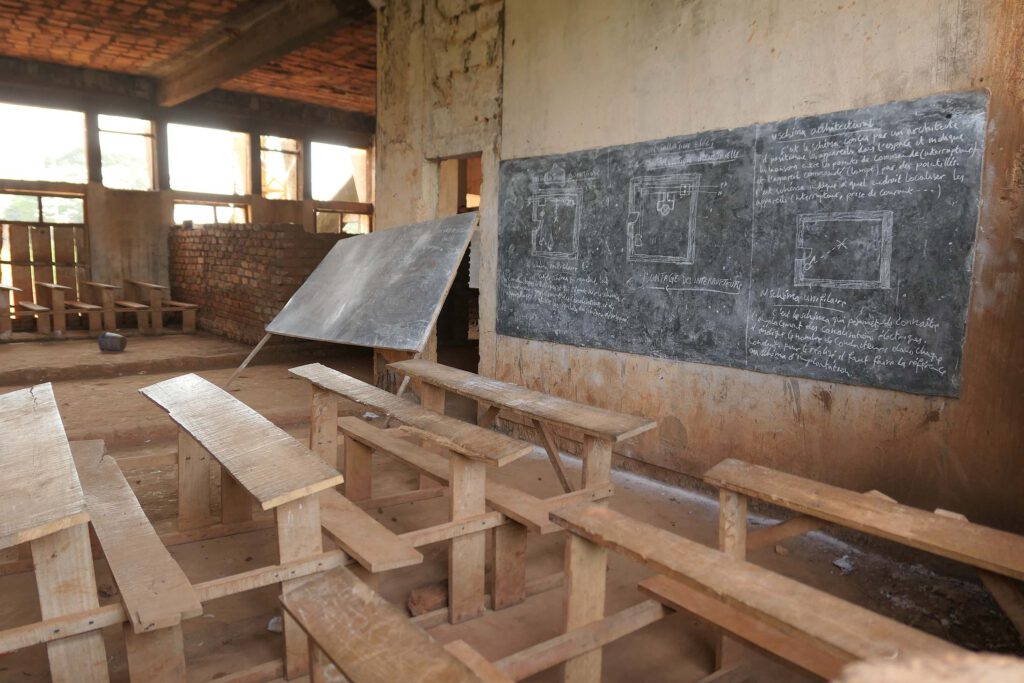 Auf dem Rückweg halten wir an einer Bauruine. Das Gebäude sollte einst die Büros der Wasserwirtschaft beherbergen, wurde aber nie fertiggestellt und nur kurzzeitig als Schule genutzt. Beschriebene Tafeln und alte Schulbänke zeugen davon.