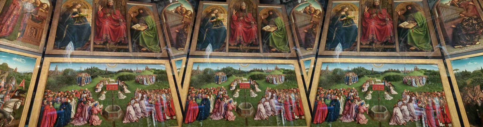 Seit 1432 steht der Genter Altar, der mit vollem Titel „Die Anbetung des Lamm Gottes“ heißt, mit Unterbrechungen (gestohlen oder entfernt) in der Sankt-Bavo-Kathedrale. Auf seinen zwölf Tafeln sind farbenfroh und mit vielen Details biblische Szenen und die Genter Skyline, die sich im Lauf der Jahrhunderte kaum verändert hat, abgebildet. Gelüftet werden die Geheimnisse und Feinheiten des Altars und der Kathedrale bei einem Rundgang in der Krypta mit einer „Augmented Reality“-Brille.