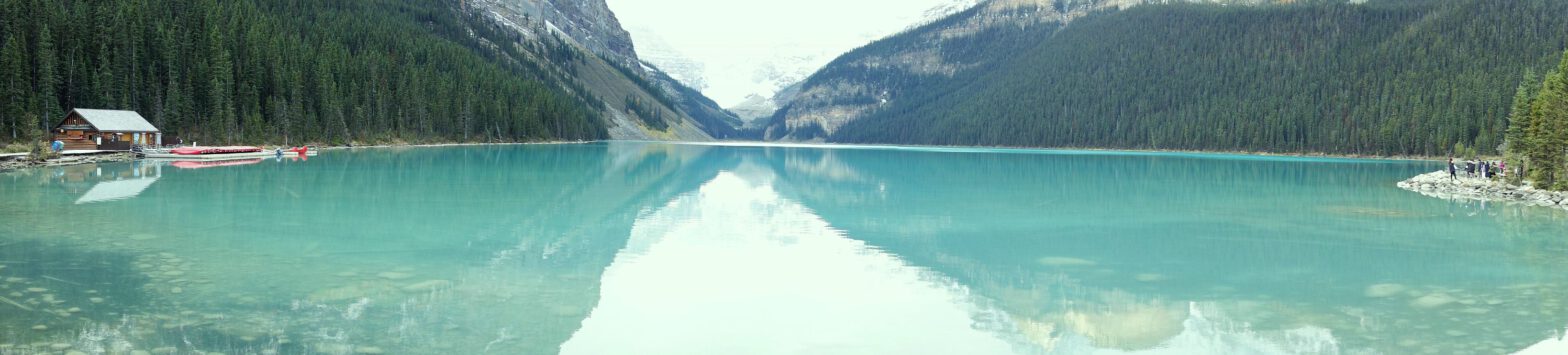 Von Jasper kommend endet der Icefield Parkway am Lake Louise, dem romantisierten Höhepunkt in den Rockies. Je mehr wir uns dem See nähern, desto dichter wird der Verkehr. Auf dem Parkplatz in Ufernähe ist kein Platz mehr frei; wir weichen zum benachbarten Lake Moraine aus. Noch bevor wir dorthin abbiegen können, blinkt auf einer Anzeigetafel die Mitteilung, dass auch der dortige Parkplatz voll belegt ist, aber vom acht Kilometer entfernten Überlaufparkplatz ein Shuttle-Bus fährt.