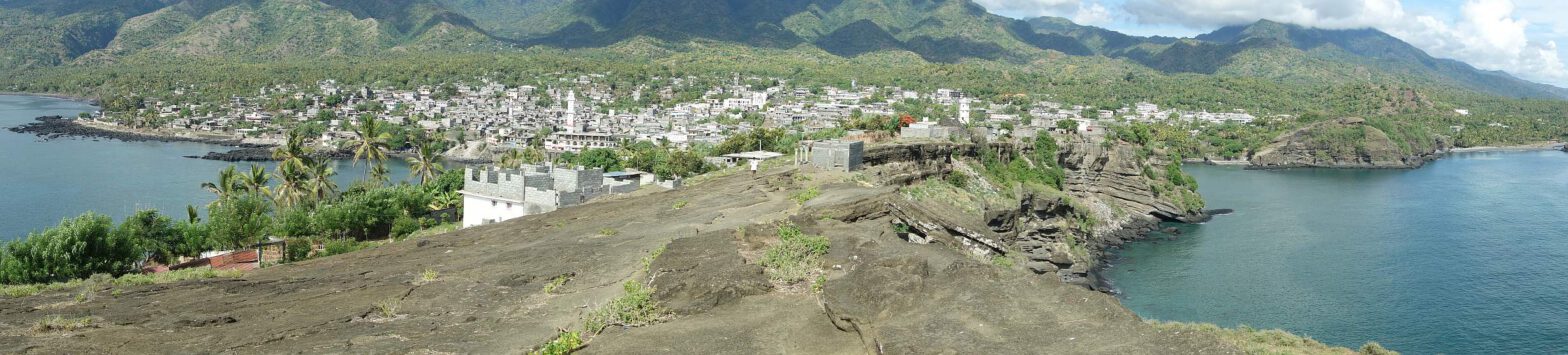 Domoni liegt idyllisch vor einer herrlich grünen Bergkulisse am Indischen Ozean und wirkt aufgeräumt. Einige Gebäude sind sogar mit EU-finanzierten Anti-Müll-Graffitis versehen. Von der Terrasse unseres Hotels zeigt Jaffar auf eine Insel am Horizont: „Das ist Mayotte. Diese Insel gehört zu den Komoren und nicht zu Frankreich.“ Für die Komoraner bedeutet die Zugehörigkeit Mayottes zu Frankreich eine Verletzung ihres Nationalstolzes. Aber bei verschiedenen Abstimmungen über die Unabhängigkeit der Komoren von Frankreich stimmte die Bevölkerung von Mayotte dafür, den Status eines französischen Überseegebiets beizubehalten.