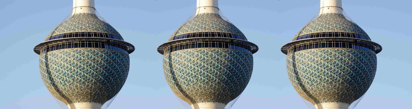 Bald stehen wir wieder draußen und erleben beim Anblick der Kuwait Towers in der Dämmerung einen ersten echten Höhepunkt. Ihre glitzernden Kugeln dienen als Wasserreservoir, während der schmale dritte Turm sie mit wechselnden Lichtspielen anstrahlt. Sie sind zugleich Sehenswürdigkeit und Wegweiser zu unserem Hotel.