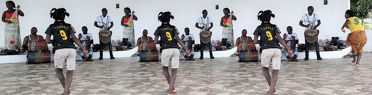 Die Insel Providence, der Ort an dem die ersten Siedler anlandeten, liegt im Mesurado River. Ein Feuerwerk von Trommelklängen lockt uns an die Spitze der Insel. Dort übt eine Theatergruppe traditionelle Tänze und lädt uns zum Zuschauen ein.