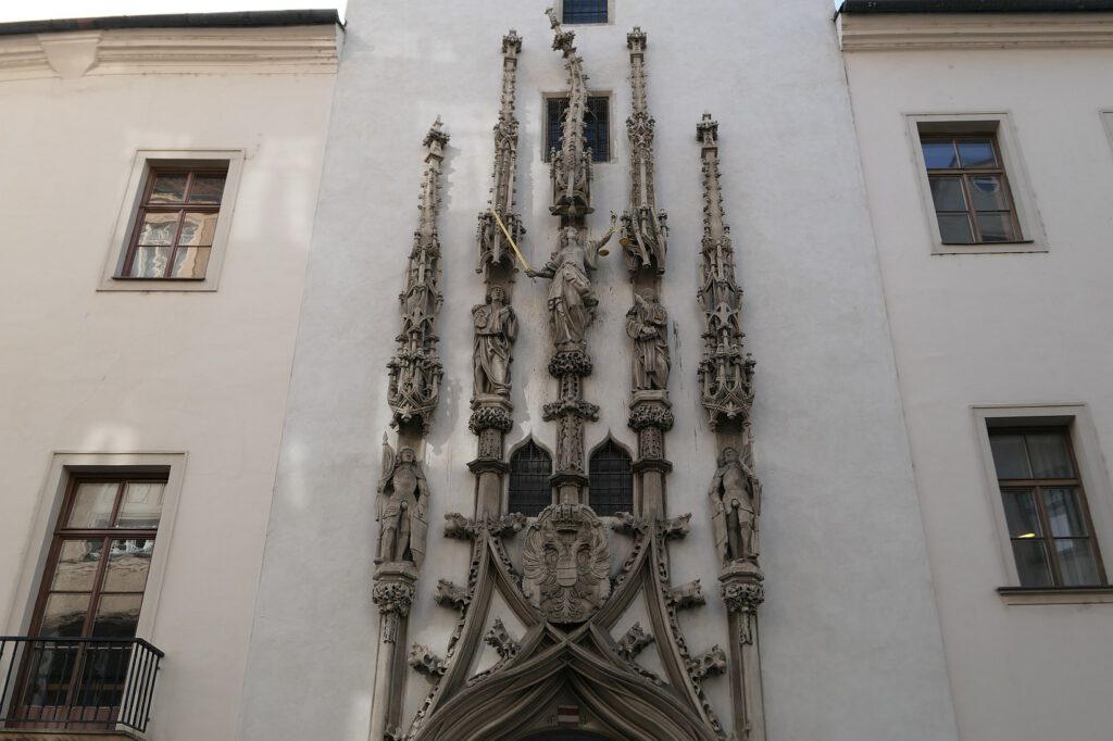 An der Fassade der St.-Jakobs-Kirche sorgt hingegen ein kleines Detail für Schmunzeln: Eine steinerne Figur streckt keck ihren nackten Hintern in Richtung der St.-Peter-und-Paul-Kathedrale, eine spöttische Geste gegenüber dem einst schleppend verlaufenden Baufortschritt des Nachbarn.