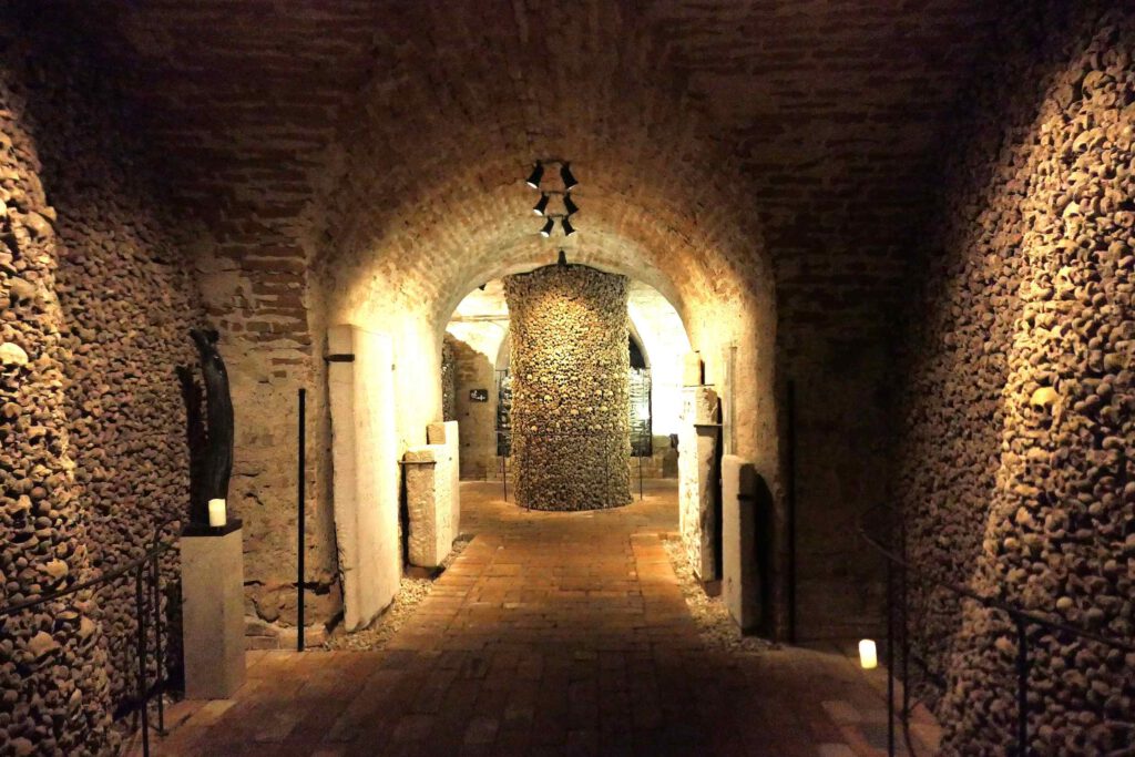 Auch Brünns Kirchenlandschaft ist bemerkenswert. Besonders das Ossarium unter der St.-Jakobs-Kirche beeindruckt: Hier ruhen die kunstvoll gestapelten Gebeine von über 50.000 Menschen. In schummrigem Licht und begleitet von leiser Musik entsteht eine eigentümlich friedliche Atmosphäre.