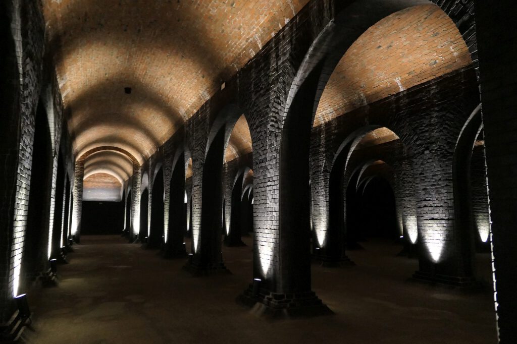 Wir beginnen unter der Erde: in den ehemaligen Zisternen, die einst die Stadt mit Wasser versorgten. Während das älteste Reservoir (erbaut 1874) an englische Wasserbauwerke erinnert, beeindruckt das zweitälteste (erbaut 1894) durch 70 arkadenförmige Säulen, das jüngste wiederum (erbaut 1917) besticht durch 87 Säulen und ein unglaublich langes Echo.