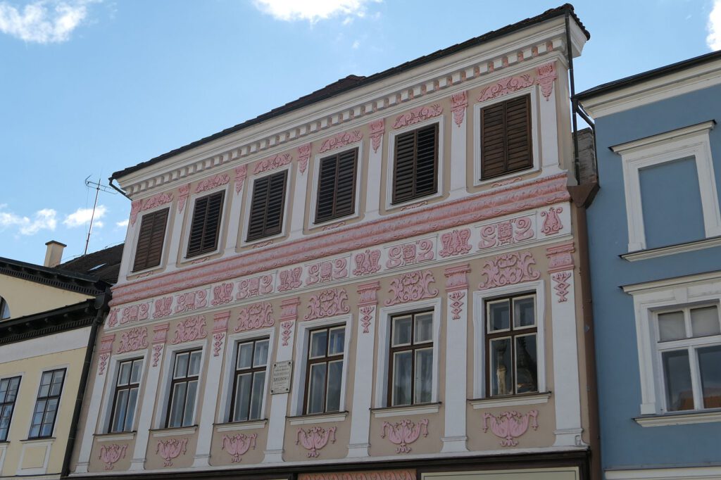 Das Schloss, das wir anschließend besichtigen wollen, ist leider nur im Rahmen einer tschechischen Führung zugänglich, doch die deutsche Übersetzung der Erklärungen in Papierform hilft uns weiter. Die prachtvollen barocken Räume und das historische Theater sind eindrucksvoll, ebenso die kunstvolle Sgraffito-Fassade, die dem Gebäude eine bemerkenswerte räumliche Tiefe verleiht.