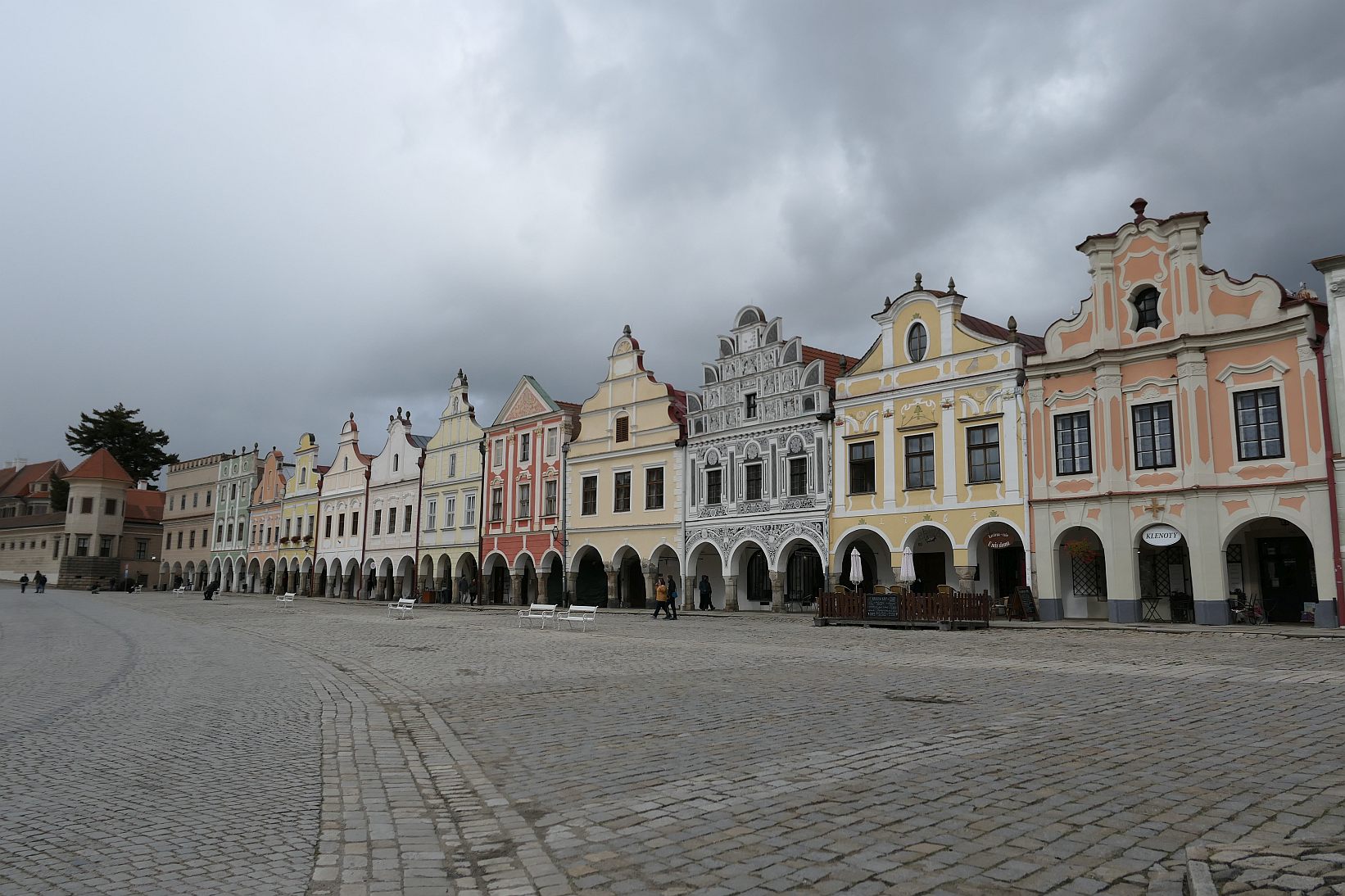 Die farbenfrohen Giebelhäuser rund um den Marktplatz strahlen im diffusen Licht eine märchenhafte Atmosphäre aus. Einst wetteiferten die Bürger um die prachtvollsten Fassaden, die ein Symbol für Wohlstand und Ansehen waren und die Teltsch bis heute zu einer der schönsten Städte Mährens machen.