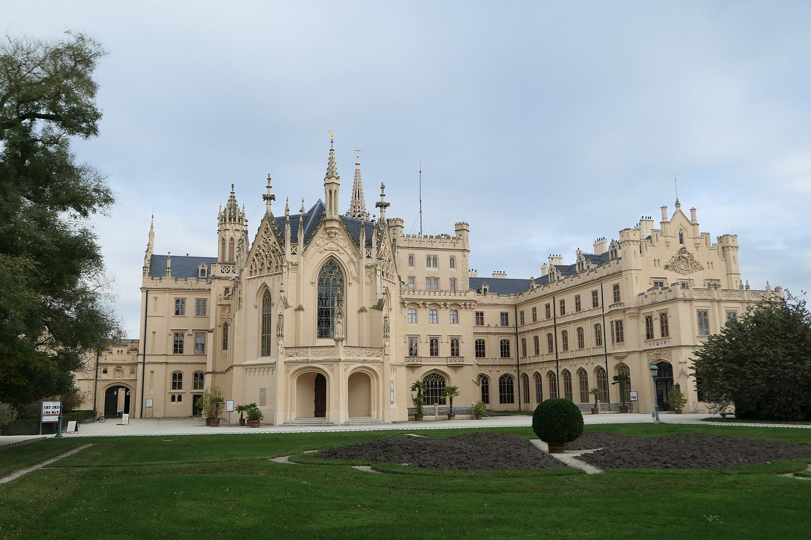 Die Reise führt uns weiter nach Südmähren, eine Region, in der sanfte Hügel, Weinreben und weites Licht die Landschaft prägen. In Lednice nehmen wir im Schloss Eisgrub, an einer Führung teil, die sich zwar auf wenige Zimmer beschränkt, aber durch die Pracht der Innenräume beeindruckt.