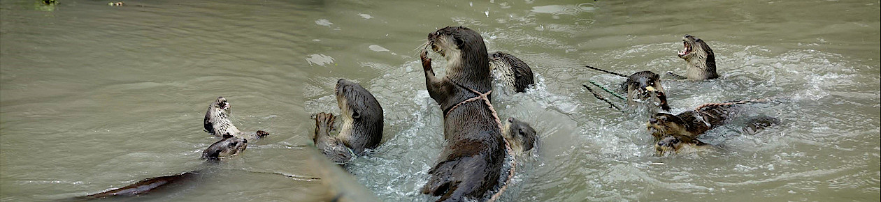 Die Fischer erwarten uns bereits auf einem Boot, rudern ein Stück weit auf den Fluss hinaus und lassen die Otter aus ihren Holzkäfigen ins Wasser. Angeleint treiben sie nach einer kurzen Spielphase kleine Fische in das Netz, welches immer wieder aus dem Wasser gezogen und abgesammelt wird. Die großen Fische haben sie bereits am frühen Morgen gejagt und so wird der Fang zu ihrer großen Freude an sie verfüttert.