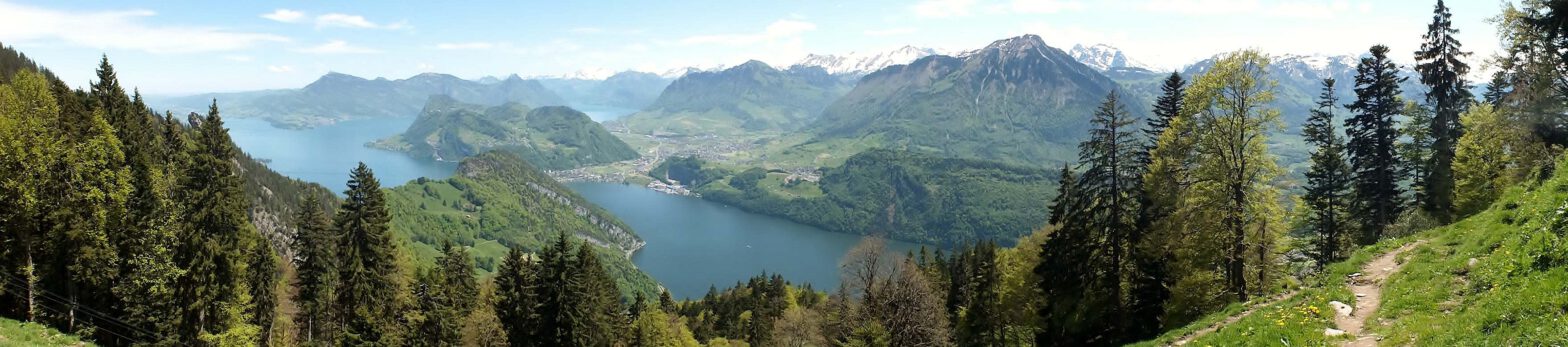 Oben angekommen erkunde ich den Berg und genieße die fantastische Aussicht auf den Vierwaldstätter See, ehe es mit der steilsten Zahnradbahn der Welt bergab geht.