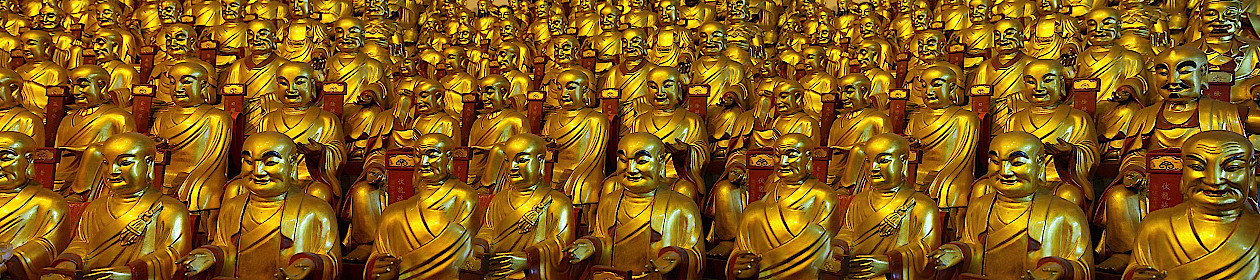Ruhiger wird es in den Klostergärten des in unmittelbarer Nachbarschaft gelegenen Po Lin Klosters. Seine Tempel beeindrucken mit warmen Farben, unzähligen goldenen Statuen, steinernen Löwen und Weihrauchgefäßen.
