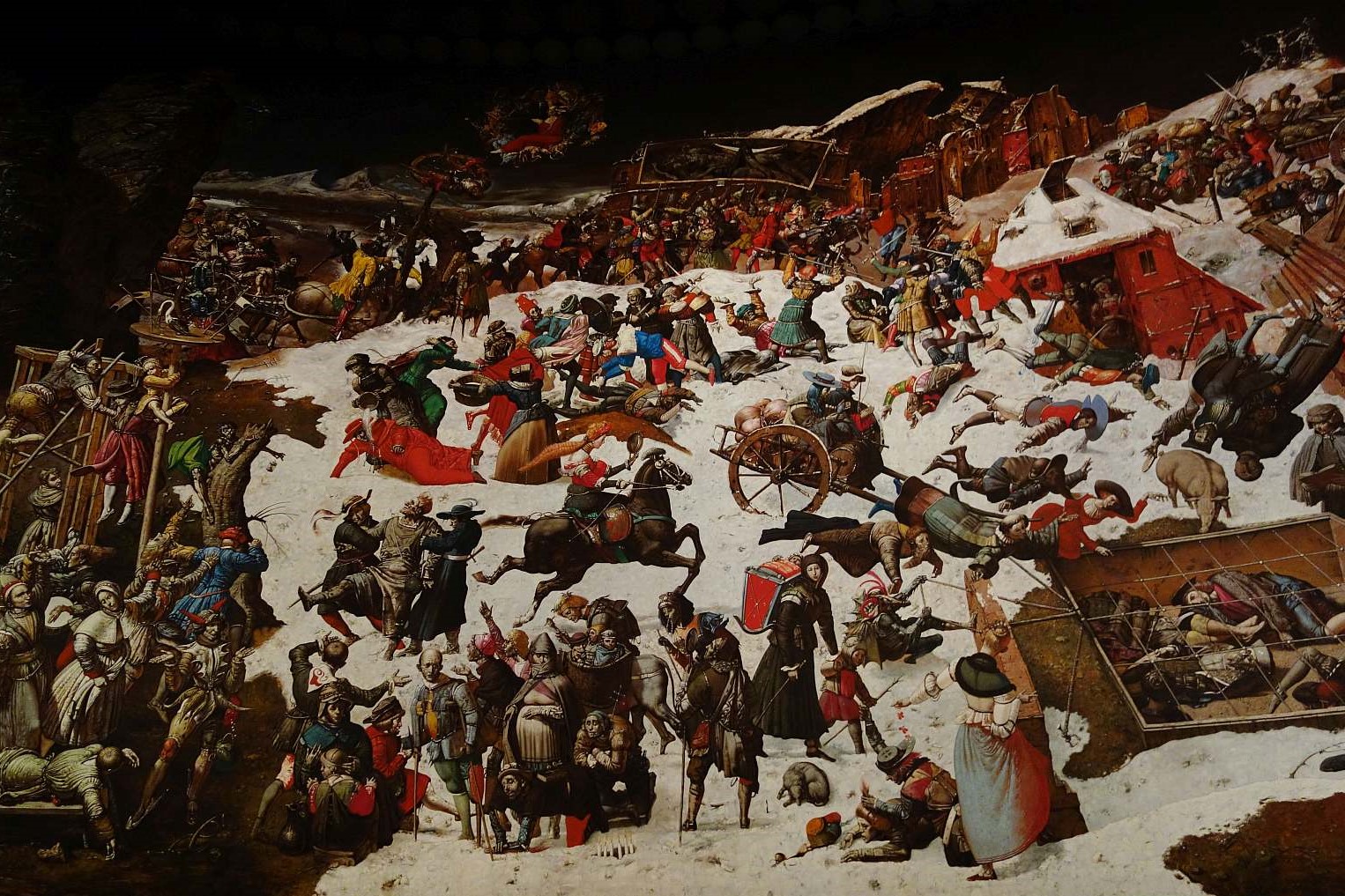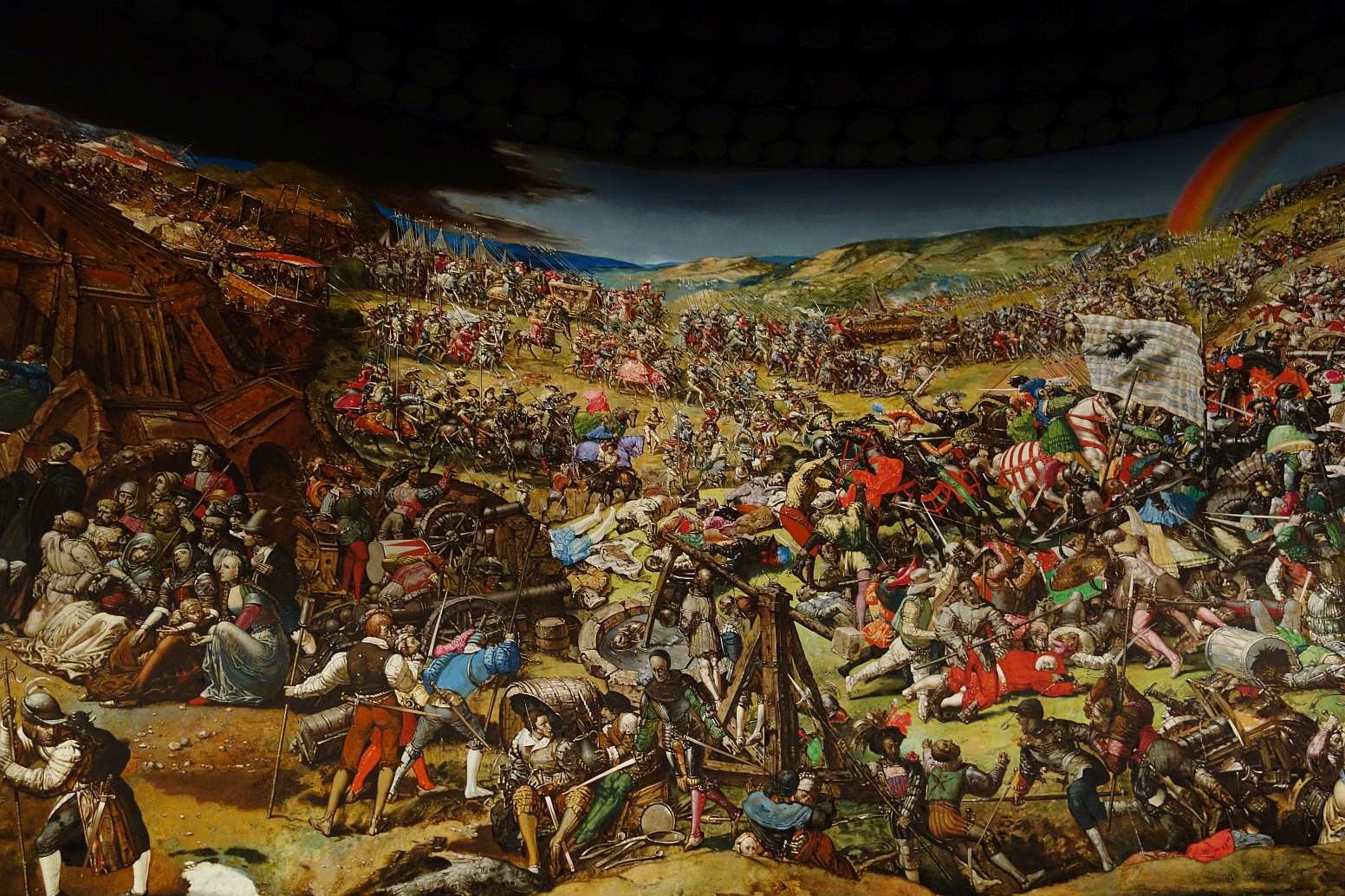 Das Panorama selbst ist eine Mischung aus Wimmelbild und Politdrama. Man läuft eine Rampe hoch und steht plötzlich inmitten einer Welt, in der Bauern mit Heugabeln gegen Ritter in glänzender Rüstung antreten. Die Bauern haben zwar verloren, aber immerhin einen Eintrag im Geschichtsbuch bekommen.